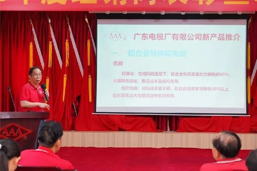 在新产品推介环节,公司重磅发布了多款符合新国标、更具市场竞争力的电缆产品。这些新品依托广缆深厚的技术积淀,在安全性能、环保标准与使用寿命上实现了全面升级,为经销商伙伴们注入了更强的市场竞争力,也为行业高质量发展贡献了广缆力量。